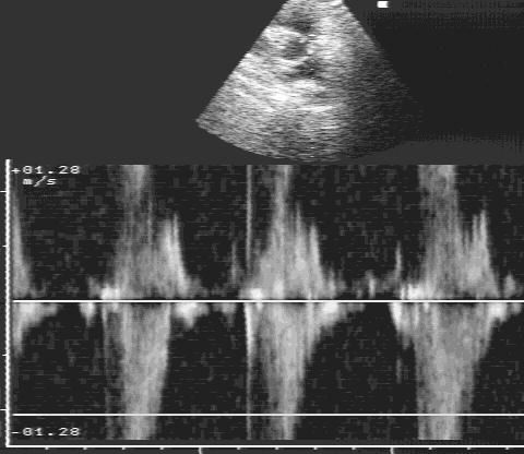 Посмотрите эхо- допплер- кардиограмму: картина клапанного стеноза легочной артерии. (2.0 мб)